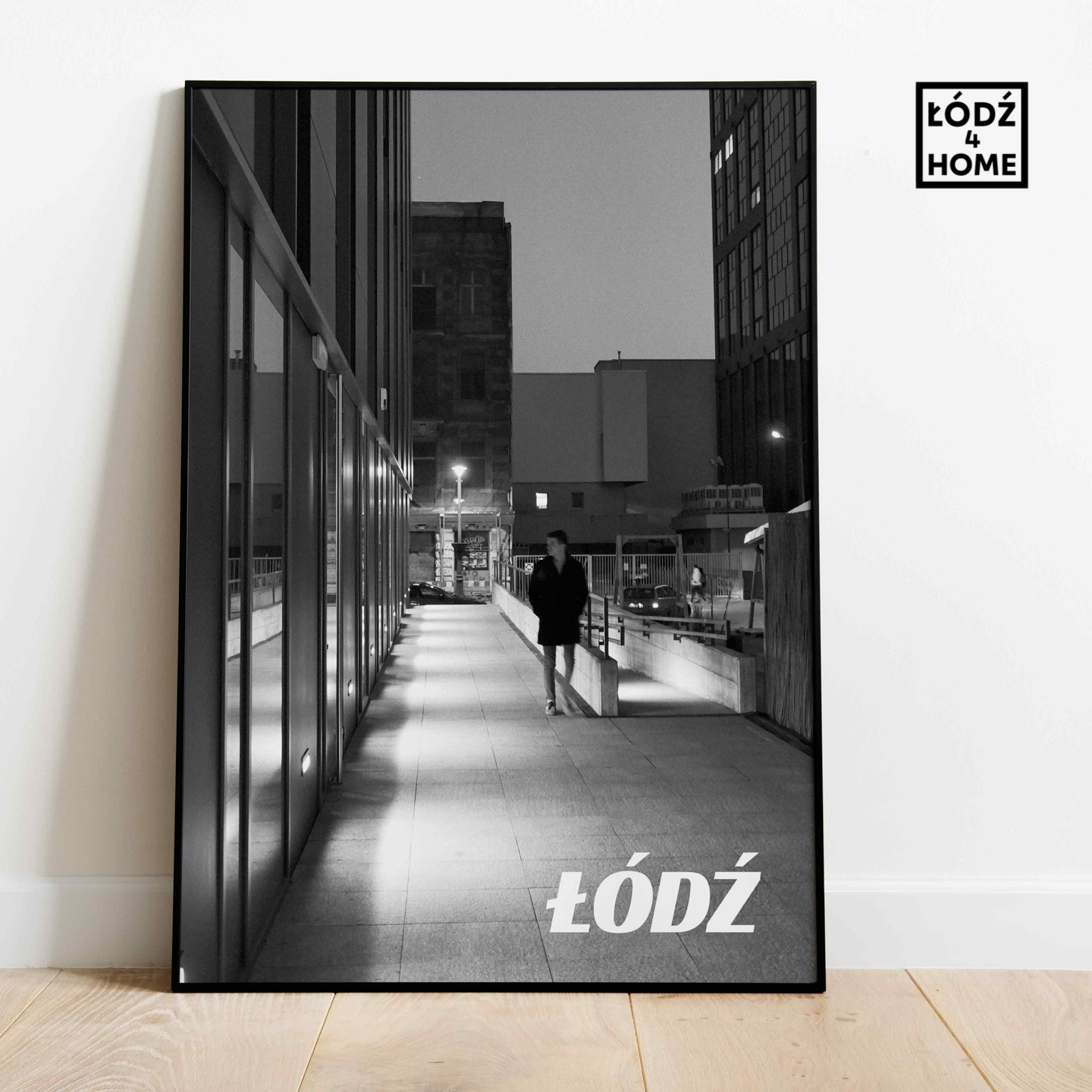 Sklep Łódź4Home prezentuje łódzki plakat przedstawiający zdjęcie Łodzi przy OFF Piotrkowskiej i ulicy Roosevelta z dodatkiem stylowego napisu.