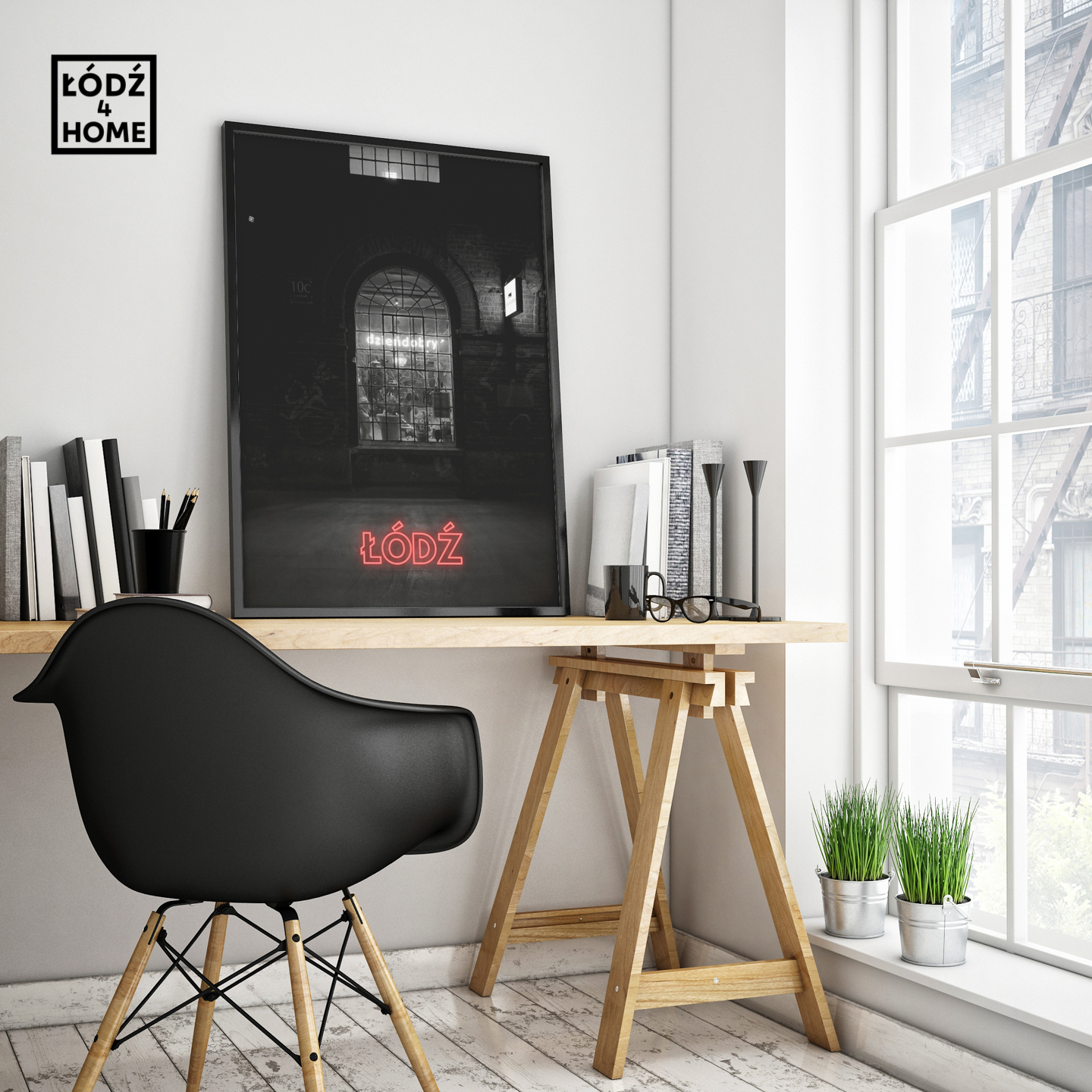 Sklep Łódź4Home prezentuje łódzki plakat przedstawiający zdjęcie Łodzi z pięknym pofabrycznym oknem na terenie OFF Piotrkowska.