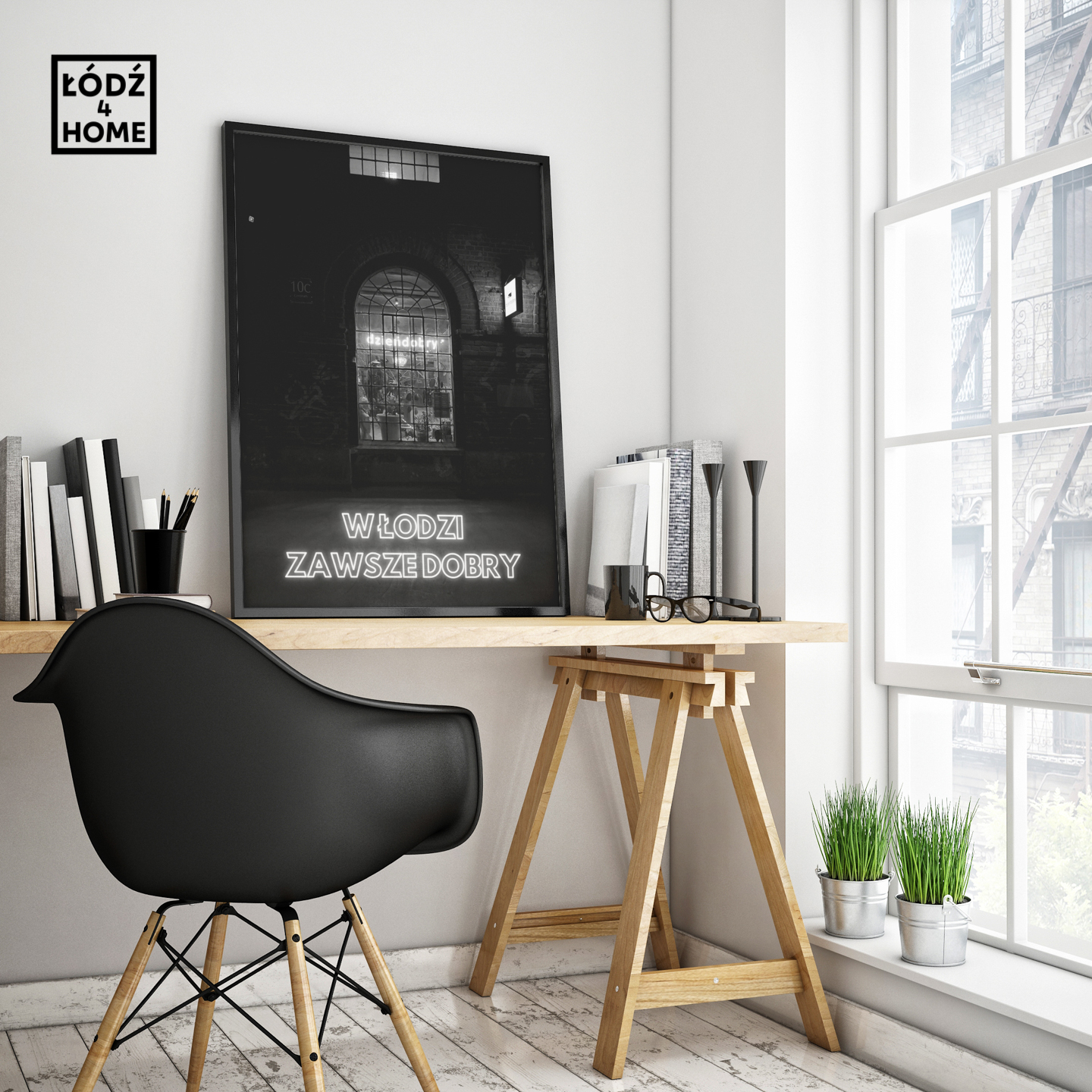 Sklep Łódź4Home prezentuje łódzki plakat przedstawiający zdjęcie Łodzi z pięknym pofabrycznym oknem na terenie OFF Piotrkowska.
