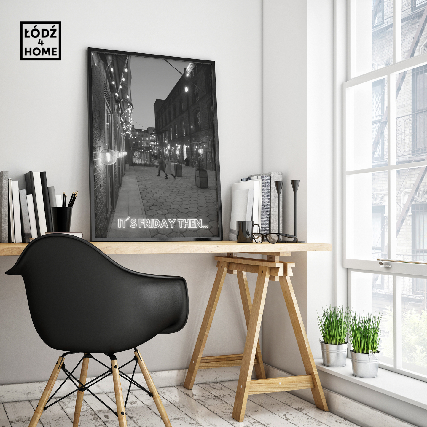 Sklep Łódź4Home prezentuje łódzki plakat przedstawiający zdjęcie Łodzi z pięknym pofabrycznym oknem na terenie OFF Piotrkowska.