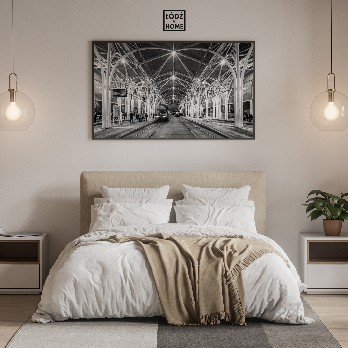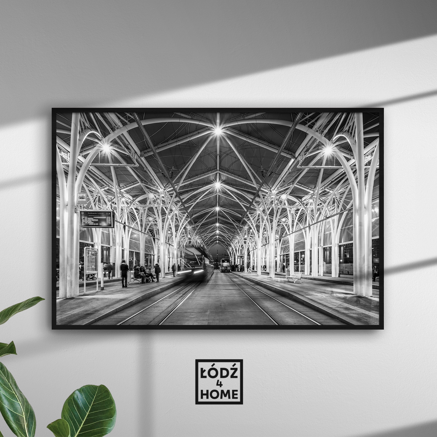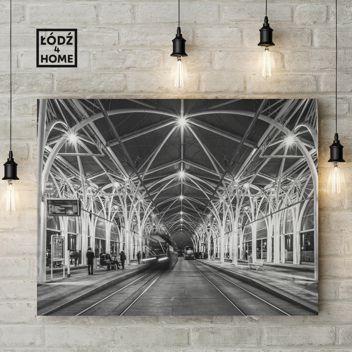 Sklep Łódź4Home prezentuje czarno białe zdjęcie Łodzi, które przedstawia tzw. Stajnię Jednorożców, czyli Centrum Przesiadkowe komunikacji miejskiej przy al. Mickiewicza.