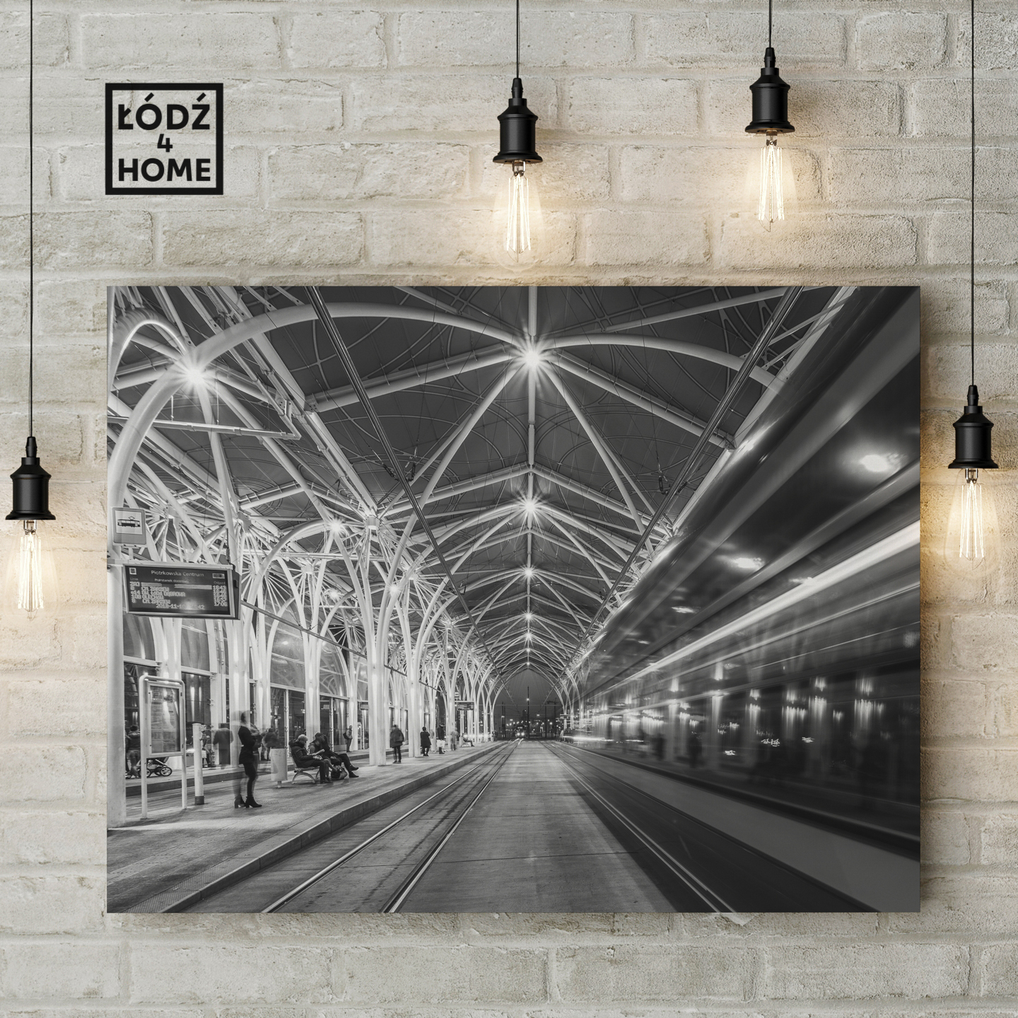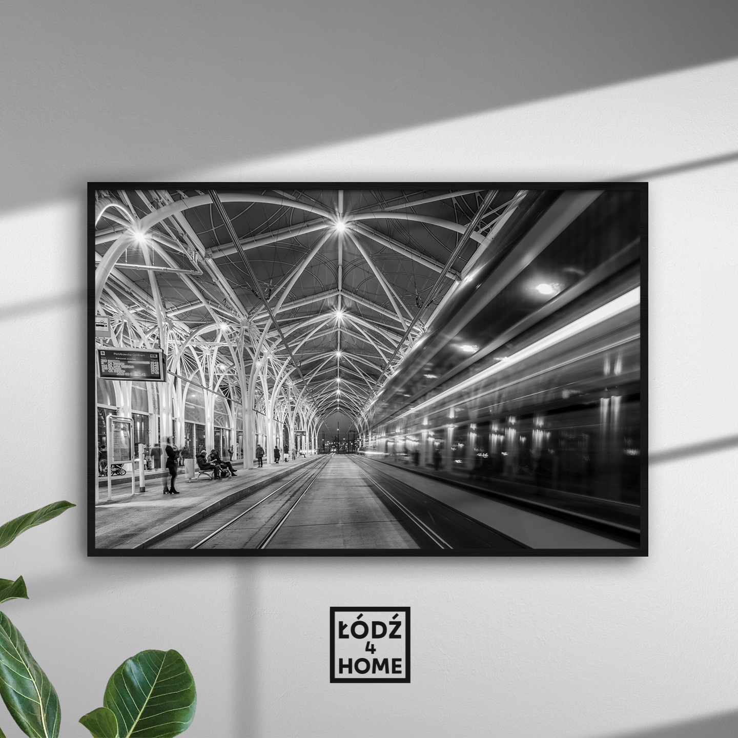 Sklep Łódź4Home prezentuje czarno białe zdjęcie Łodzi, które przedstawia tzw. Stajnię Jednorożców, czyli Centrum Przesiadkowe komunikacji miejskiej przy al. Mickiewicza.