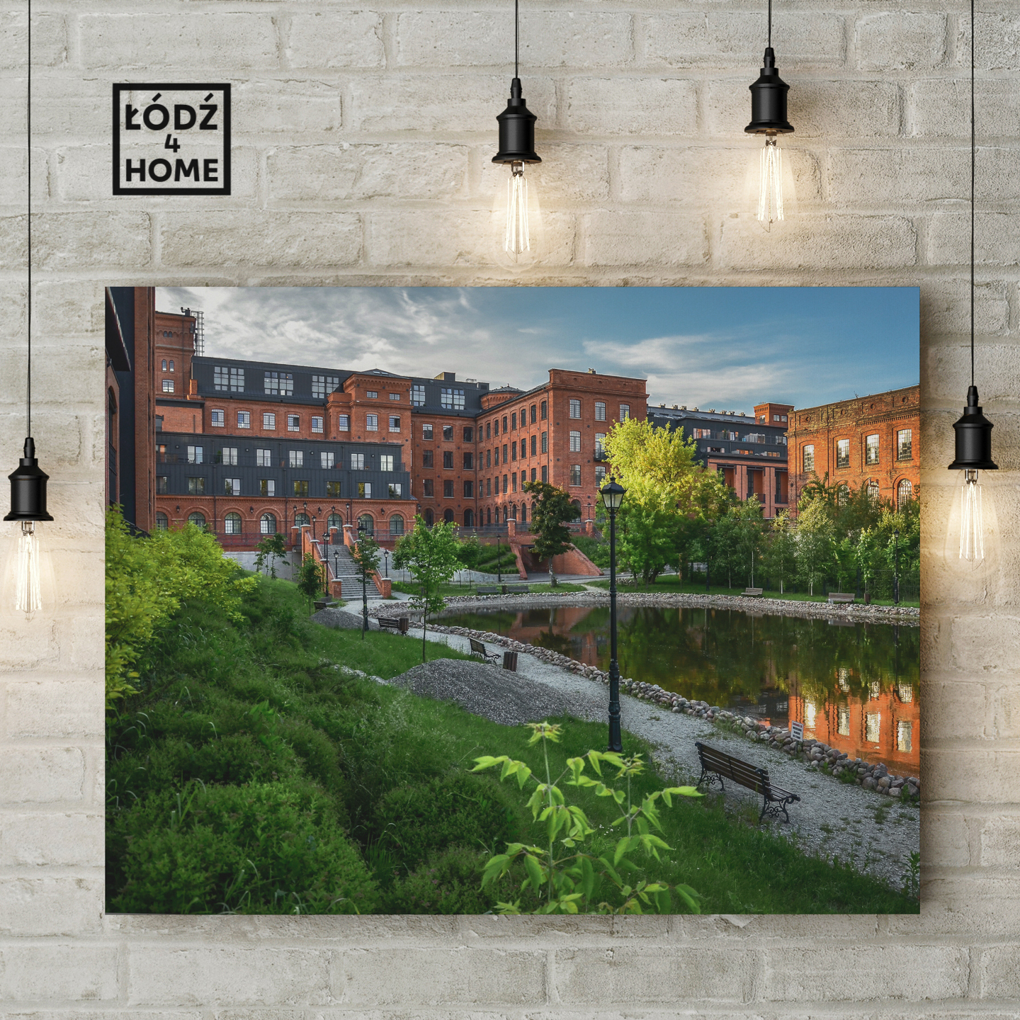 Sklep Łódź4Home prezentuje zdjęcie Łodzi, które przedstawia tzw. Lofty u Scheiblera, czyli kompleks mieszkaniowy w zabytkowej przędzalni Scheiblera na terenie zabytkowego kompleksu Księży Młyn.