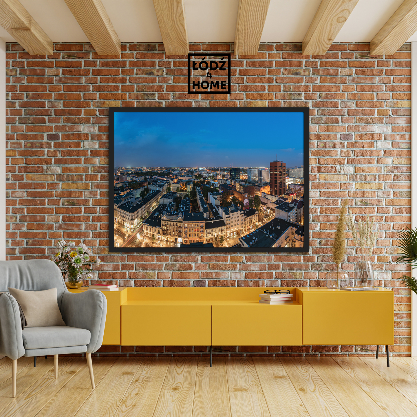 Sklep Łódź4Home prezentuje zdjęcie Łodzi, które przedstawia efektowną panoramę ścisłego centrum Łodzi widzianą z dachu budynku łódzkiego oddziału ZUS.
