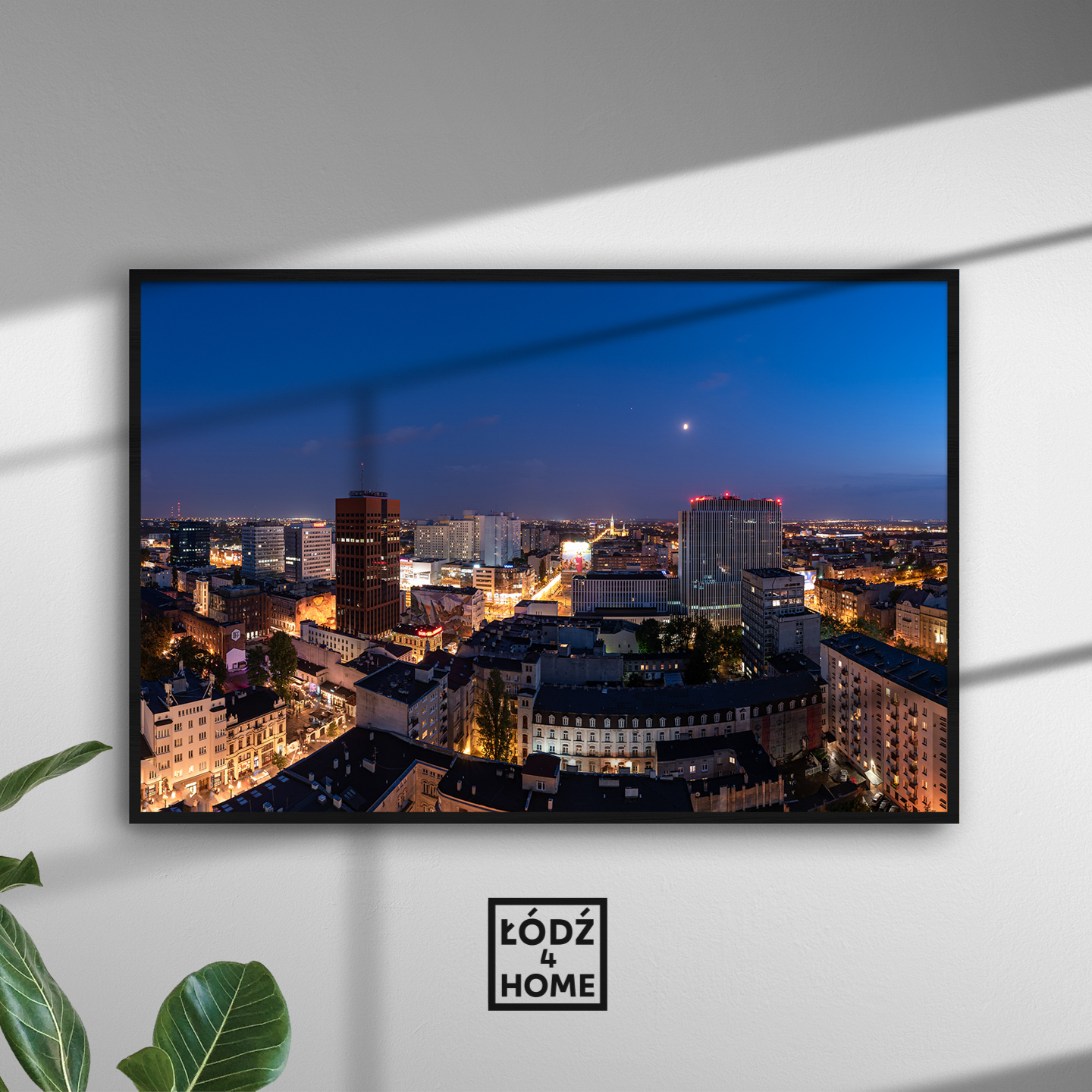 Sklep Łódź4Home prezentuje zdjęcie Łodzi, które przedstawia efektowną panoramę ścisłego centrum Łodzi widzianą z dachu budynku łódzkiego oddziału ZUS.