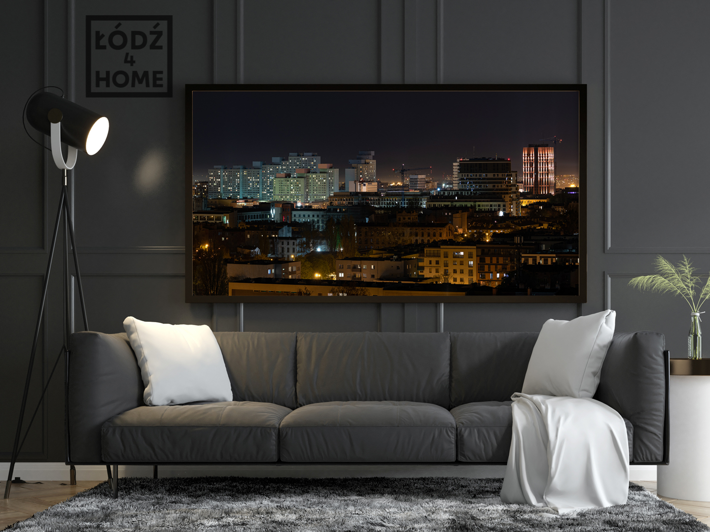 Sklep Łódź4Home prezentuje zdjęcie Łodzi, które przedstawia panoramę Łodzi nocą z widocznym m. in. osiedlem Manhattan, budynkami Red Tower oraz Ilumino.