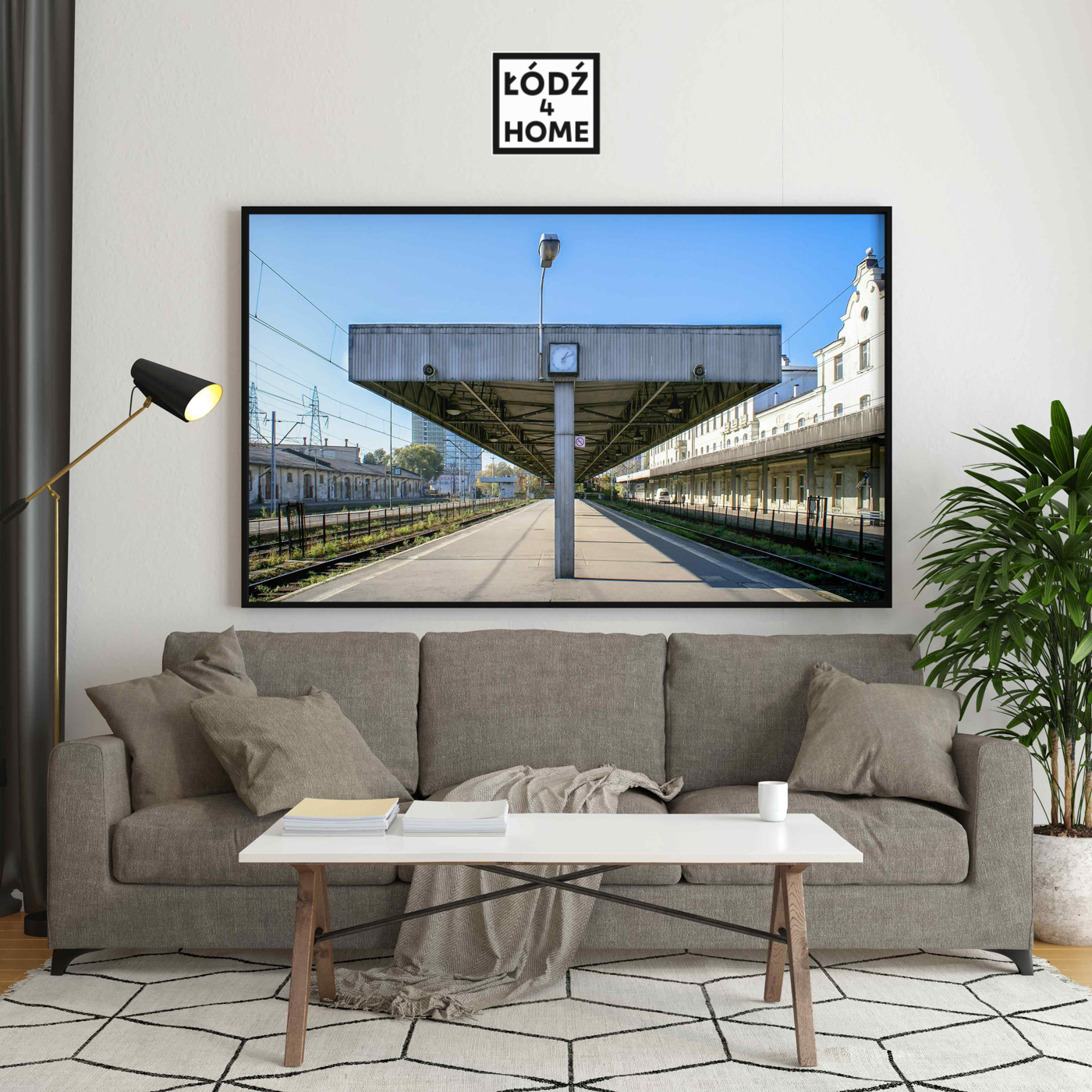 Czarno białe zdjęcie Łodzi, które przedstawia bardzo charakterystyczną wiatę z zegarem na peronie dawnego dworca Łódź Fabryczna. Widok, który dla kilku pokoleń łodzian jest bardzo symboliczny i jest dobrą pamiątką dawnej Łodzi, którą każdy z nas pamięta. Wydrukowana fotografia sprzedawana jest bez ramki. Dostępna jest także wersja kolorowa (osobny produkt).