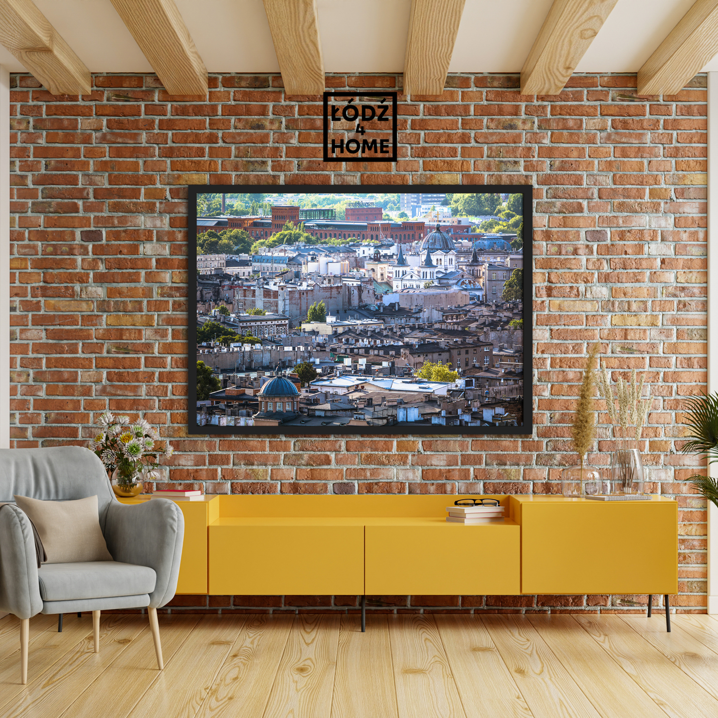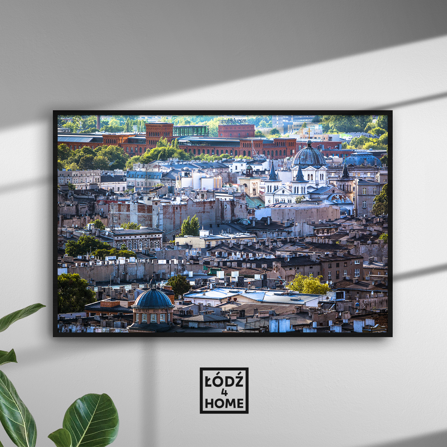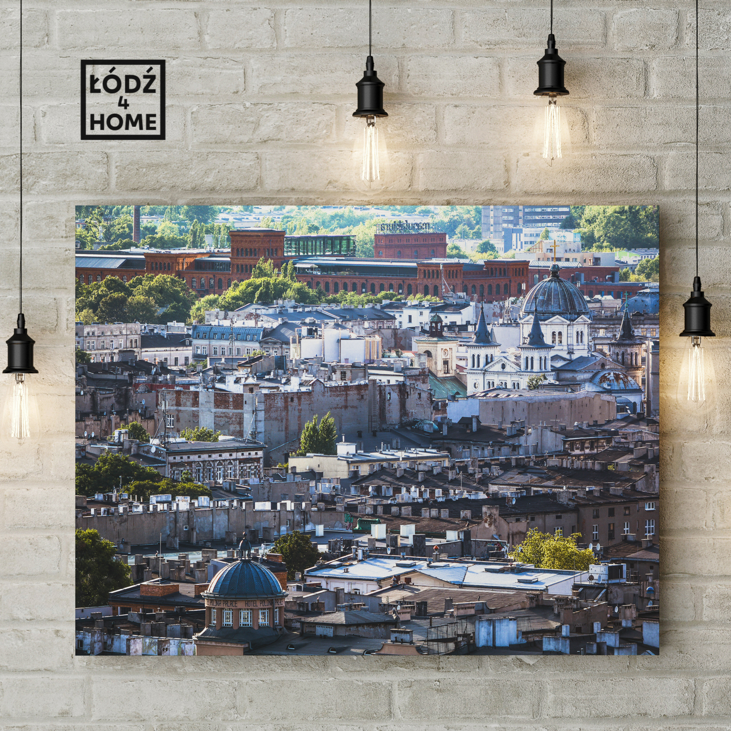 Sklep Łódź4Home prezentuje zdjęcie Łodzi, które przedstawia dziesiątki dachów łódzkich kamienic, pałaców i fabryk.