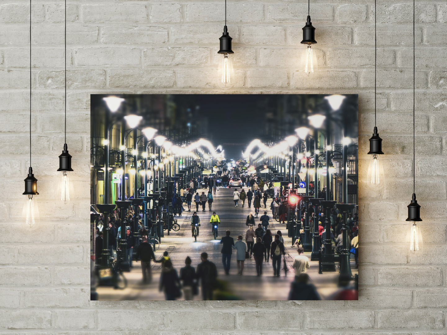 Sklep Łódź4Home prezentuje zdjęcie Łodzi, które przedstawia ulicę Piotrkowską w Łodzi w czasie wiosennego wieczoru.